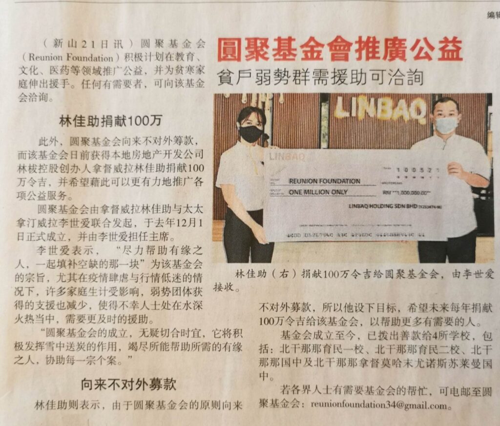 LINBAQ donates RM1mil to Reunion Foundation